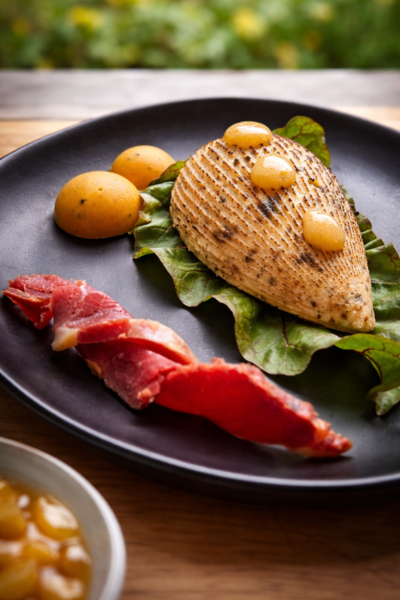 Unsere Gerichte beinhalten Gemüse, Obst, Beeren und Kräuter aus eigenem Anbau. Auch unser Fleisch beziehen wir direkt vom regionalen Bauern
